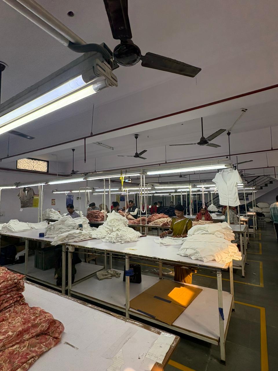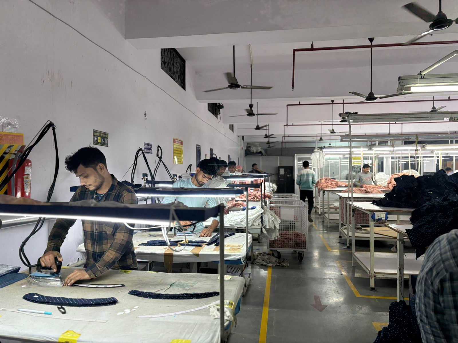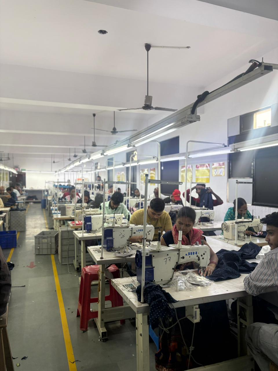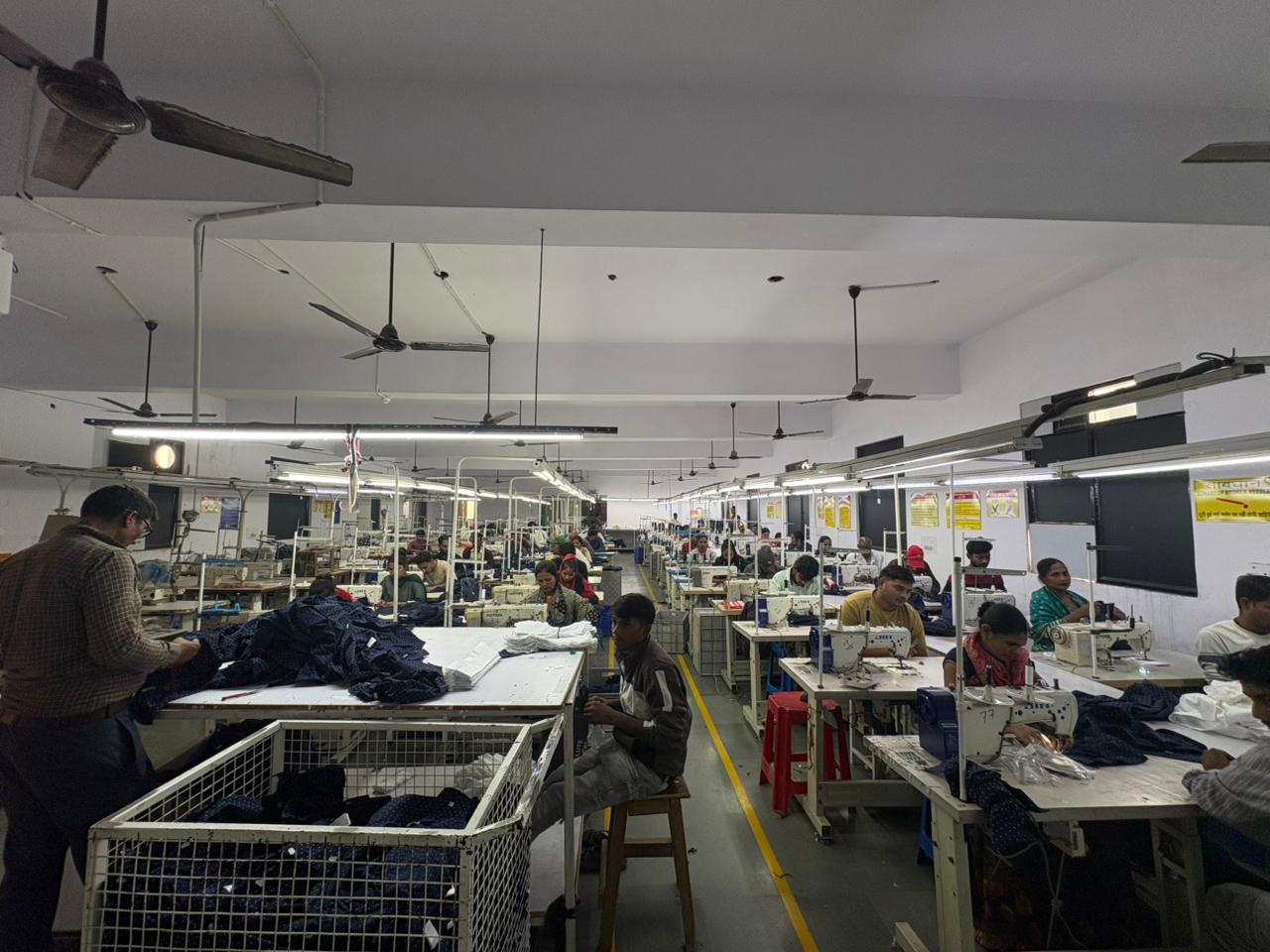 The section where we cut fabric pieces are sewn together using specialized machines, essentially assembling the garment by creating seams and joining different components to form a complete piece of clothing.