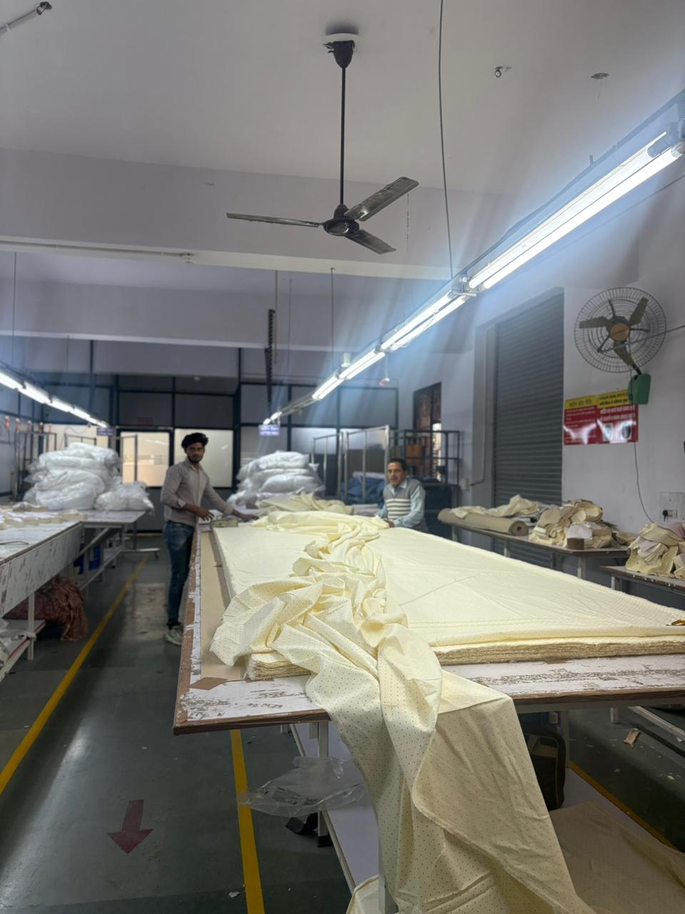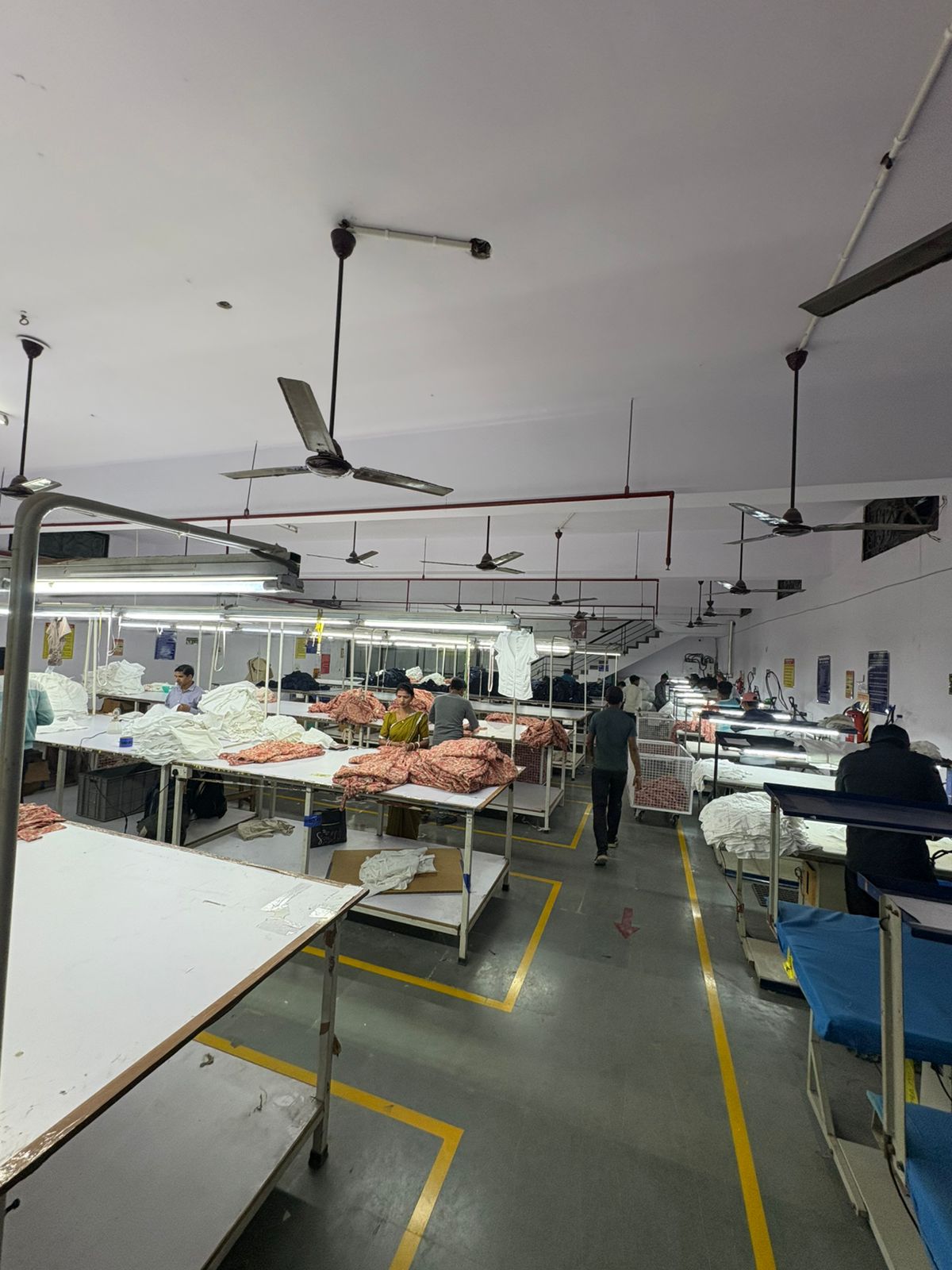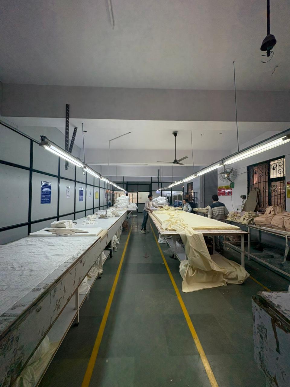 The section where we cut fabric pieces are sewn together using specialized machines, essentially assembling the garment by creating seams and joining different components to form a complete piece of clothing.